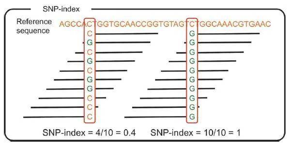 SNP-index这个词,作为BSA的最常用的核心算法,给出的是BSA类项目最重要的QTL定位结果。SNP-index通过结果的可视化,可以非常直观地看出BSA定位得到的QTL在基因组上的位置。例如下图是一个典型的SNP-index的展示结果:上图中,第一行和第二行分别代表两个子代极端性状混池的SNP-index结果,第三行是两个子代池的△SNP-index的结果。通过第三行我们可以看出,QTL被...