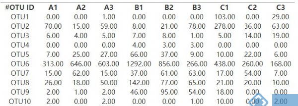 一、OTU统计分析 1.聚类统计表 为了方便研究样品的物种的组成多样性信息,需对样品的有效序列进行聚类,按照97%的序列相似度将这些序列聚类成为OTUs( OperationalTaxonomic Units ),得到每个cluster的序列及其代表序列(即为OTU),用于统计每个OTU序列和丰度进行下游分析。 图1 OTU聚类统计表 每行代表一个OTU 在不同样品中的序列数,每列代...