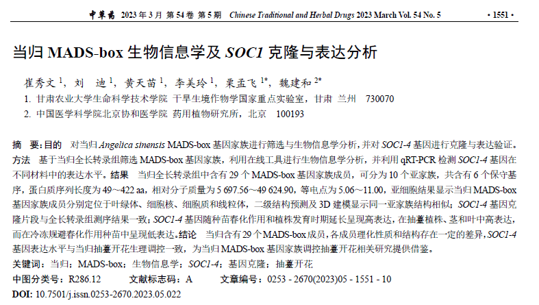 当归MADS-box生物信息学及SOC1克隆与表达分析