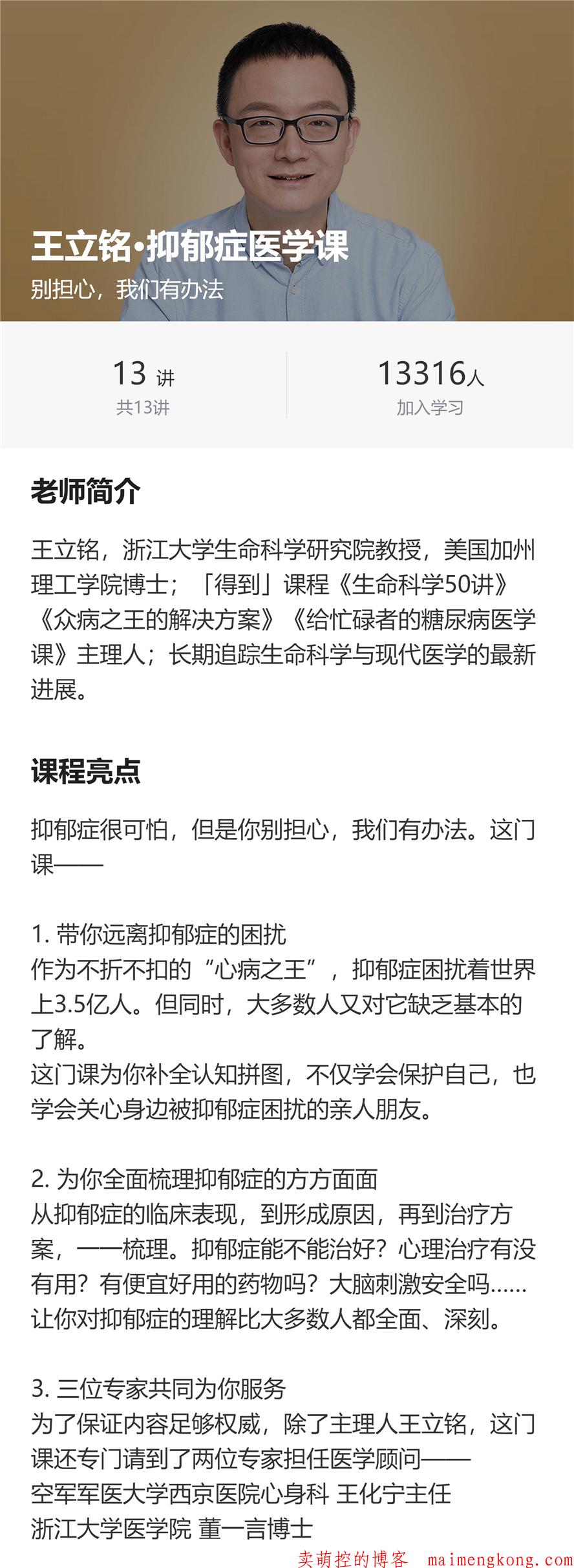 王立铭抑郁症医学课13讲