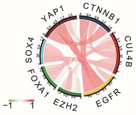 表达谱分析中,经常会使用到相关性分析,探索一组基因间的共表达特征。例如,这些基因间的表达是否存在较强的协同性,一个基因表达值的改变是否与另一个基因表达值改变显著相关,它们之间是共激活还是抑制关系等。对于相关性分析结果的可视化,通常有多种方法,例如相关性散点图、弦图、共表达网络图。本篇教程则主要带大家了解如何基于基因表达值的相关性,绘制弦图。如下弦图来自文献“CUL4B pro...阅读全文>... 阅 读 全 部 >