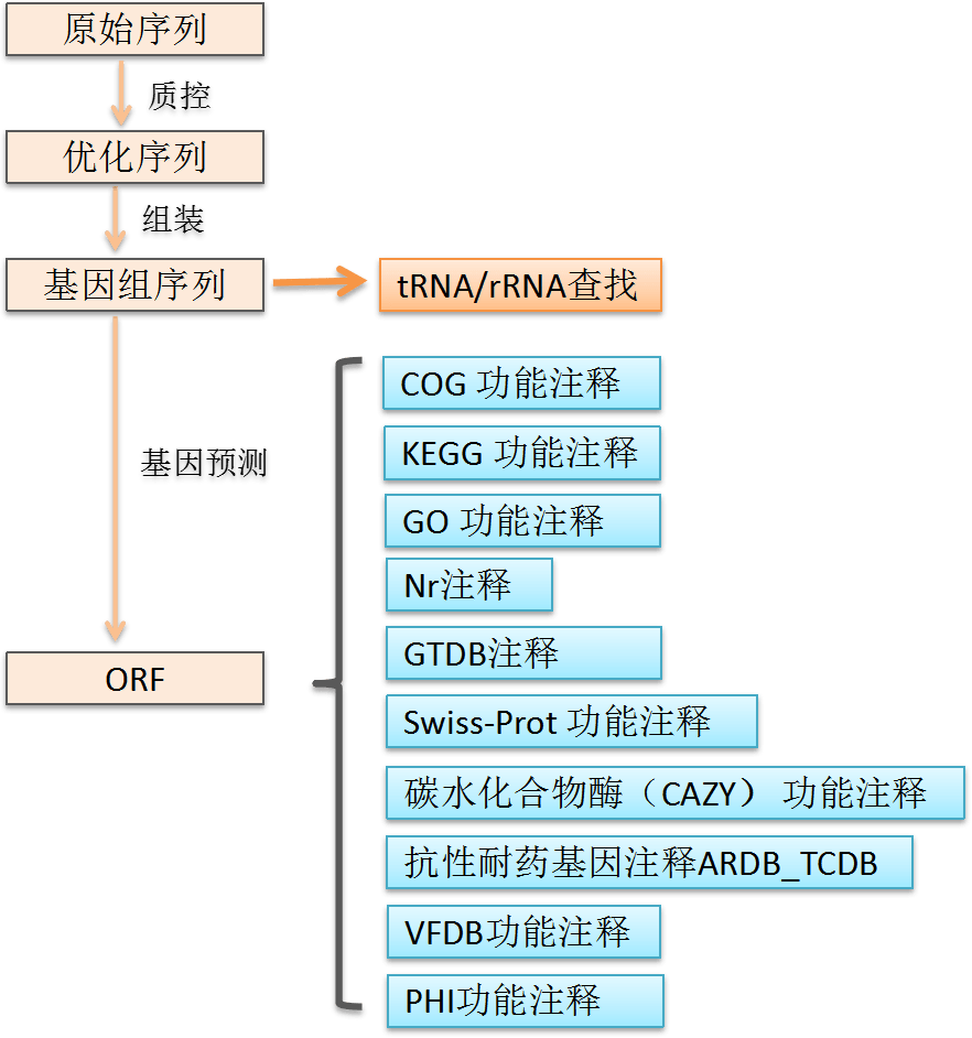 一、 介绍细菌基因组研究,是通过基因组测序和组装,获得细菌全基因组序列,并对基因组开展结构预测,功能注释、比较基因组学及泛基因组研究。依据研究精细程度不同,分为框架图(也称为草图)、完成图(0gap),下面我们主要介绍框架图的分析内容。二、 分析流程基本流程为,建库测序,序列优化,基因组组装,基因及结构预测,功能注释,画图展示。三、 分析步骤与结果展示...阅读全文>>...