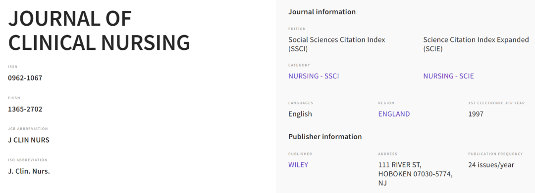 SCI投稿特殊要求之Journal of Clinical Nursing