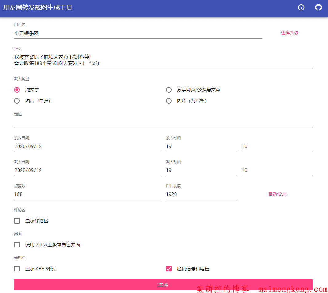 朋友圈点赞截图在线生成源码