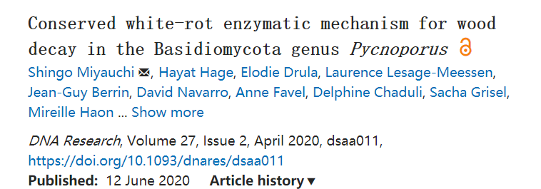研究背景担子菌在木材分解方面具有重要的意义,大部分能够降解木材的物种都属于担子菌。白腐菌是属于担子菌亚门的真菌 ,因腐朽木材呈白色而得名。白腐菌是生物界中一类奇特的丝状真菌,是能够降解木材主要成分(纤维素、木质素和半纤维素)的微生物之一 ,它们对各种异生物质具有独特降解能力和降解机制。白腐菌对木质纤维素的降解很大程度上是一个复杂的酶学过程,需要一系列的水解和氧化酶的协同作用来完成,而且不同的白腐菌... 阅 读 全 部 >