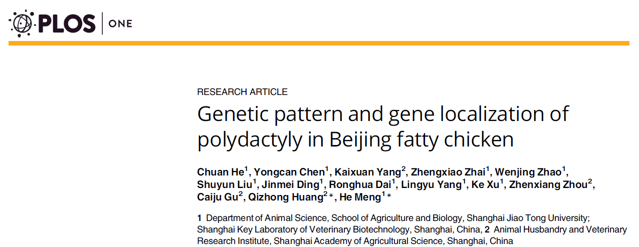 5月10日,《Plos One》杂志(最新影响因子: 3.057)在线发表了派森诺与上海交通大学合作的简化基因组+重测序项目的一篇文章。下面,小编就来分享一下该文章的内容。研究背景多趾,即趾头数目过多,是脊椎动物中常见的一种遗传性肢体异常。鸡常见趾型为四趾,多趾畸形一般为额外多一个拇趾在一边或两边脚趾。研究目的前人利用混池测序性状定位(BSA)、连锁分析和全基因组关联分析...阅读全文>&g...