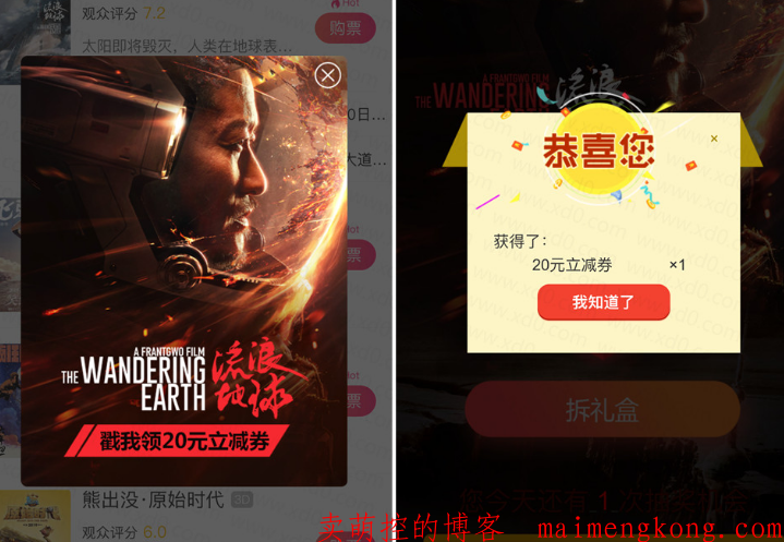 免费 代金券 流浪地球 20元