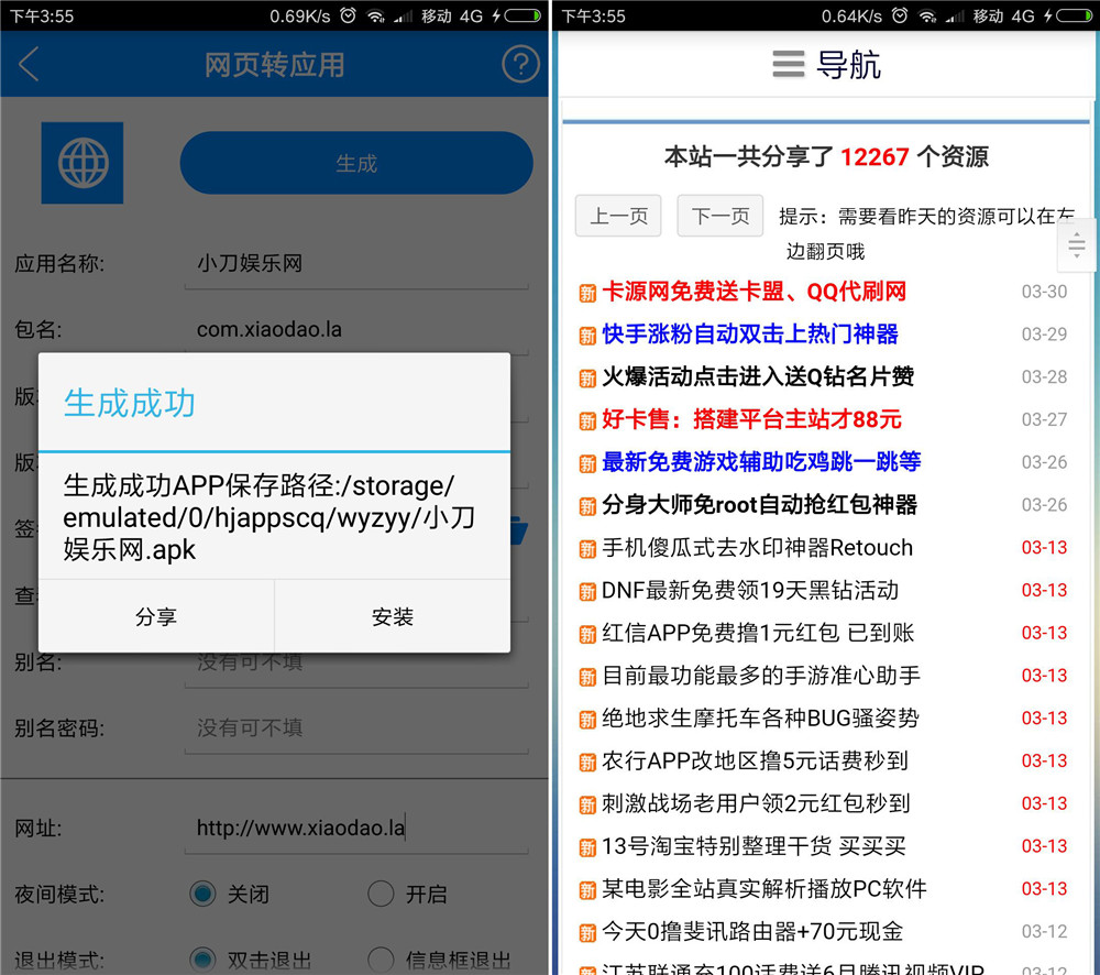 个人代涮网、购物网、表白网页等一键封装安卓APP必备神器!!软件可一键自定义图标、启动图、应用名称、跳转网址以及自定义软件内弹窗信息还有软件界面采用腾讯X5内核,生成的APP支持播放视频、下载文件、监听跳转支付(代涮网)等操作阅读全文>>... 阅 读 全 部 >
