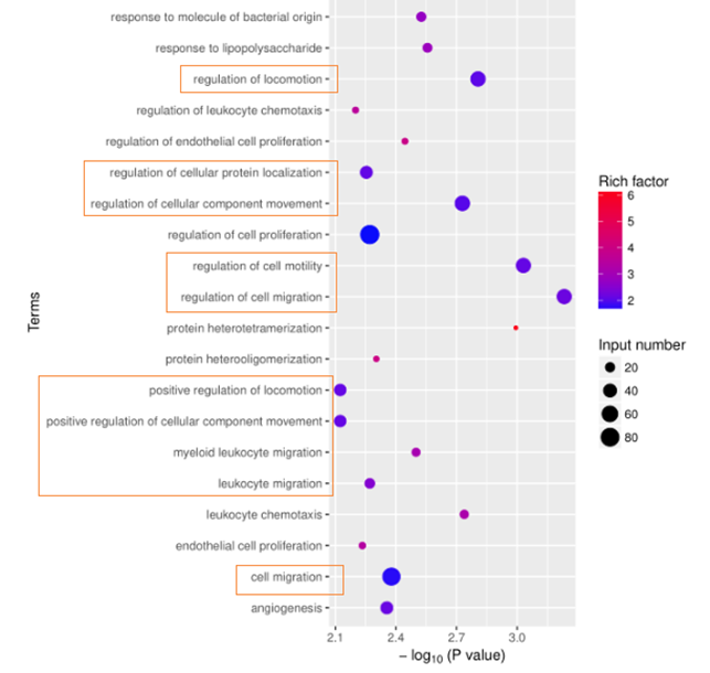 ChIP测序报告中有许多结果图,都可以在文章中一展身手,比如我们今天讲解的GO富集分析图。 1. 蛋白结合(修饰)基因的GO富集分析GO即Gene Ontology,http://www.geneontology.org,是一个将全世界所有与基因有关的研究结果进行分类汇总的综合数据库,利用GO数据库,可以根据基因参与的BP(Biological...阅读全文>>...