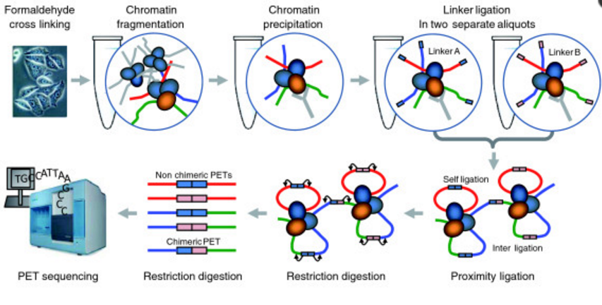 首先,让我们先回顾一下分子生物学的基本知识。人类细胞中的DNA序列长度约1828.8毫米,而细胞核的直径只有5微米,那么,如何将这些DNA装入核中是细胞面临的一个巨大挑战。好在DNA并不是裸露地存在于细胞核中,它们由核小体折叠缠绕,形成可以调节的结构。这就意味着DNA序列不能简单地理解为按照一维线性排列,而应该是具有三维折叠和环套状态的结构。我们知道DNA重测序,转录组测序,甲基化...阅读全文&... 阅 读 全 部 >