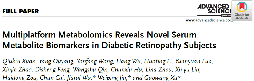 GCMS、LCMS代谢组学LCMS脂质组揭示糖尿病性视网膜病变生物标志物