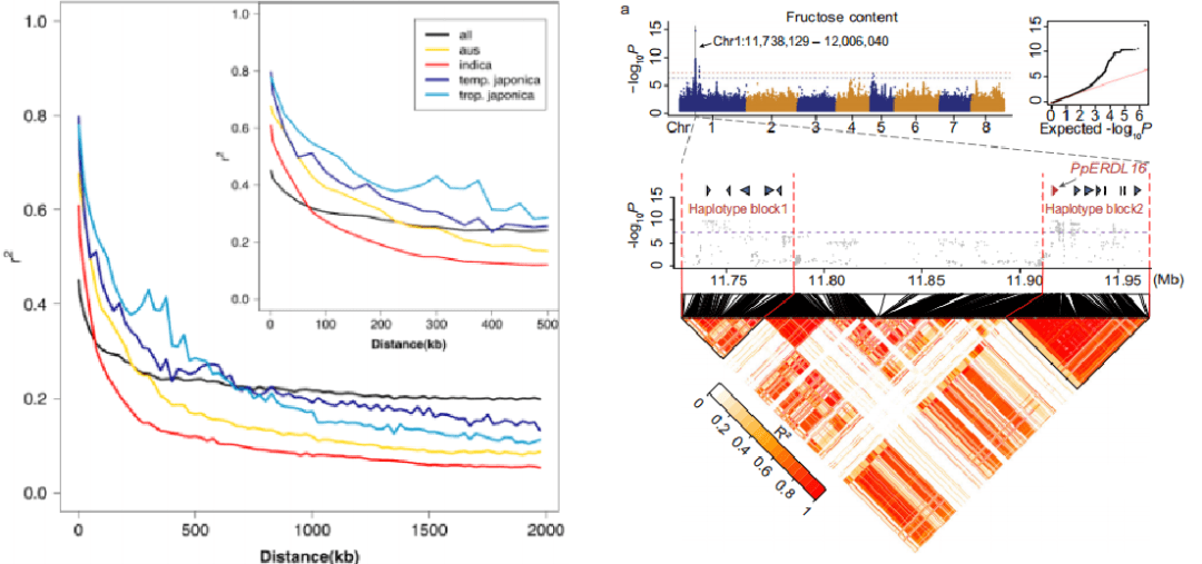 连锁不平衡(linkage disequilibrium, LD)分析是群体遗传学研究中常见的分析内容,也是关联分析的基础,在很多的GWAS文章中都会出现LD衰减图及单倍型block图,接下来一起连锁不平衡(linkage disequilibrium, LD)初探。图1 水稻自然群体连锁不平衡衰减与桃果糖含量位点相关单倍型区块1、LD的概念当位于某一座位的特定等位基因与另一座位...阅读全文&g... 阅 读 全 部 >
