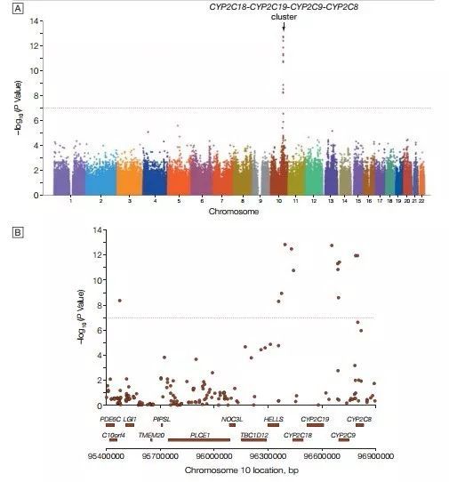 传统的全基因组关联分析,是直接阐述DNA与外在表型间的关联。但这一方法也存在一些不足。传统GWAS的不足1难以确定具体功能突变由于连锁不平衡的作用,与特点性状关联的区域往往具有较大的宽度,从而难以确定具体功能突变。如下图[1],氯吡格雷GWAS分析的结果咋一看是个细峰,实际放大后你会发现这个峰具有1.5Mb的宽度。峰的区域内涵盖了CYP2C18- CYP2C19-CYP2C9- CYP2...阅读... 阅 读 全 部 >