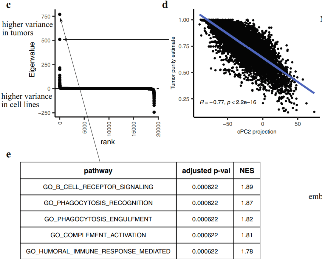 跟着Nature Communication学绘图之Figure 1的绘制大家好,我是阿琛。在前面讲解的内容中,我们学习了数据的预处理,构建Seurat对象,以及后续的降维分析处理及其可视化过程。接下来,我们来看下如何对PCA分析得到的结果进行可视化展示,以及GSEA分析。可以看到,在图中,图c为PCA分析得到的cPC 特征值按等级排序,包括19,188 个特征值。图d为肿瘤样本在 cPC2 上的...