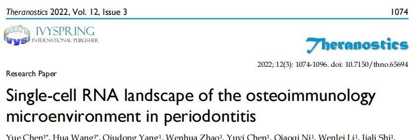 期刊:Theranostics技术:单细胞测序研究背景慢性牙周炎是由牙周组织的慢性炎症组成的常见疾病,它是一种在人类中非常普遍的疾病,影响全球约20%-50%的人口。慢性牙周炎可使个体易患全身性疾病,例如心血管疾病、糖尿病和阿尔茨海默病,以及胃肠道疾病和不良妊娠结局。牙周炎治疗的主要目标是控制消息和炎症,阻止牙周组织破新,防止牙槽骨丢失。在牙周炎进展过程中,大量...阅读全文>>...