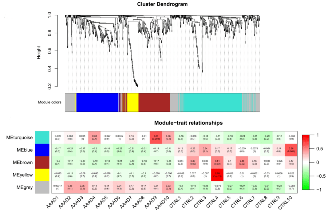 WGCNA分析,是加权基因共表达网络分析。在文献中,我们经常能够看到这样的WGCNA分析图。例如文献“Expression profiles of circRNAs and the potential diagnostic value of serum circMARK3 in human acute Stanford type A aortic dissection”中的Figur...阅读全文... 阅 读 全 部 >