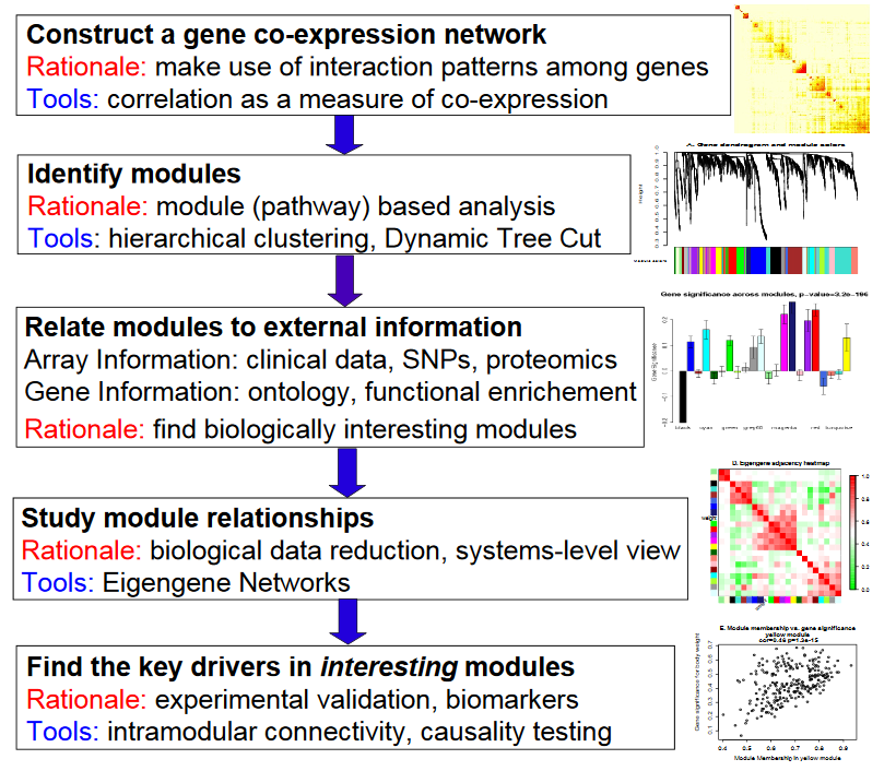 WGCNA基本概念加权基因共表达网络分析 (WGCNA, Weighted correlation networkanalysis)是用来描述不同样品之间基因关联模式的系统生物学方法,可以用来鉴定高度协同变化的基因集,并根据基因集的内连性和基因集与表型之间的关联鉴定候补生物标记基因或治疗靶点。相比于只关注差异表达的基因,WGCNA利用数千或近万个变化最大的基因或全部基因的...阅读全文>&g... 阅 读 全 部 >