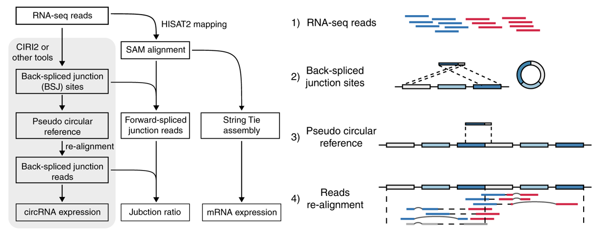 1. CircRNA背景及分析流程简介1.1. 背景简介环形RNA是一类在真核生物中广泛存在的具有特殊环状结构的非编码RNA分子。已有文献表明,在生物体内,环形RNA有着miRNA海绵、RBP海绵以及翻译短肽等多项功能,在许多生物学过程中发挥着重要作用。目前研究表明,大部分环形RNA来源于蛋白编码基因的外显子区域。在pre-mRNA剪接的过程中,除典型的内含子剪接事件外,还...阅读全文>&...