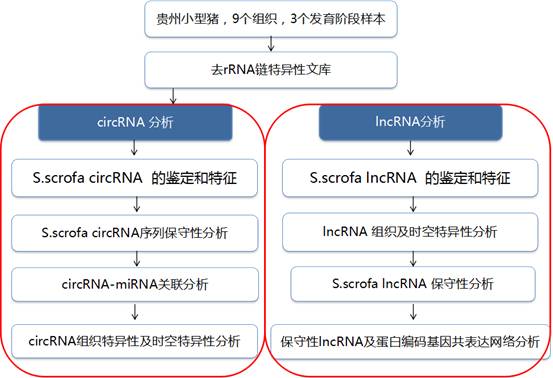 近期,中国农业科学院畜牧研究所分别在DNA Research以及Scientific Reports上发表了关于贵州小型猪circRNA及lncRNA的相关研究。两篇文章分别从lncRNA和circRNA两方面进行系统的鉴定、特征分析等,构建了全面的基因转录图谱,并进一步揭示了转录后调控的机制。值得注意的是,两篇文章都是基于同一批样本一次建库获得的数据结果。1次测序,2篇文章产出,怎么实现的呢.....