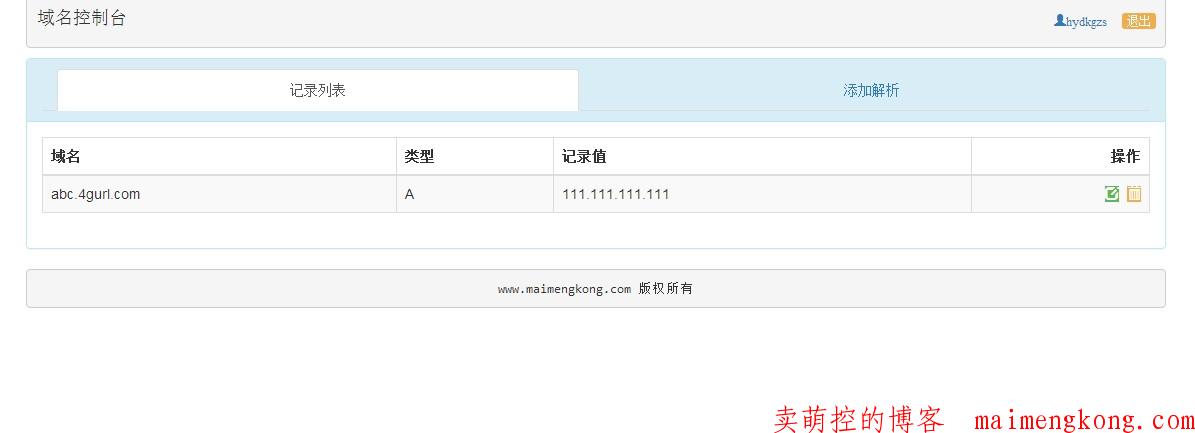 喜大普奔,卖萌控推出旗下费二级域名DNS系统——白告免费二级域名DNS系统。系统提供多个域名,含有已备案和未备案域名,.com/.cn/.net主流域名免费用。系统支持A记录,CNAME解析。在白告免费二级域名注册成功后,即可获得类似yourname.4gurl.com格式的类似域名(该域名已备案)。以下是系统截图:提供多个域名,含有已备案和...阅读全文>>...