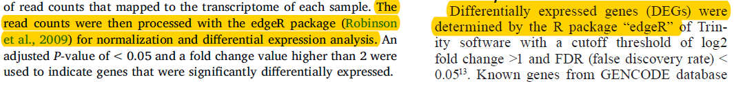 基于转录组测序获得的定量表达值,识别差异表达变化的基因或其它非编码RNA分子,实际上方法还是非常多的。但就目前来看,DESeq2和edgeR是出现频率最高的两种方法了。DESeq2已经在前面文章中作了简介,本篇继续展示R包edgeR的差异基因分析流程。类似DESeq2,edgeR作为被广泛使用的R包,文献中经常能看到它的身影,如下举例。相关文献描述1 安装edgeRe...阅读全文>>... 阅 读 全 部 >