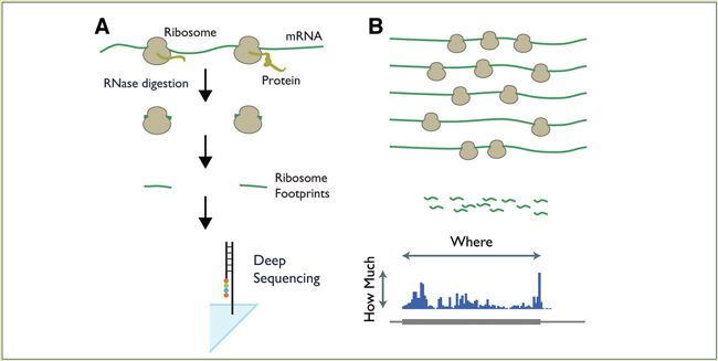 这段时间许多童鞋在后台问,TRIzol裂解的细胞能做翻译组测序(Ribo-seq)吗?今天统一回复下。图 (A)核糖体保护mRNA足迹不被消化;(B)将足迹与基因组比对,可以显示出哪些mRNA正在翻译以及翻译水平高低上图是Ribo-seq简化的实验流程图。Ribo-seq实验是这样做的:快速收获细胞并裂解,保持体内核糖体结合mRNA的位置。然后用RNase I对细胞裂解液进行消化处理(Nucl..... 阅 读 全 部 >