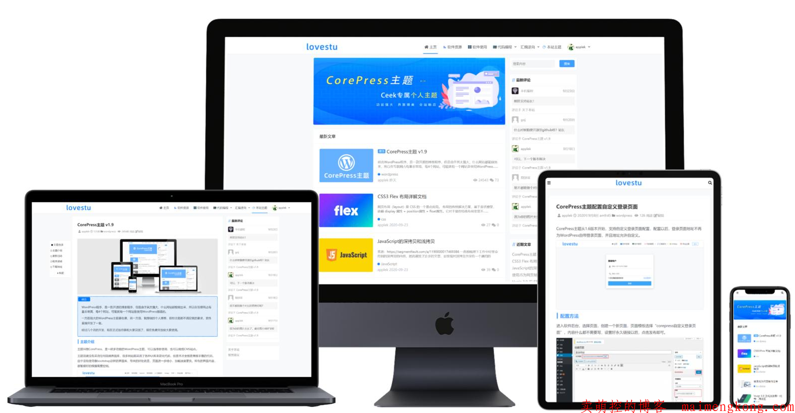 源码介绍 CorePress是一款WordPress主题,适合个人网站,极客网站,CMS等多种站点使用。 无框架设计 站长手撸前台界面,无任何前端界面框架,加载更迅速。 响应式设计 主题采用响应式设计,完美兼容PC端、手机端和平板等各类设备访问 大量优化功能 对于WordPress,主题供了很多的优化,屏蔽了Wor... 阅 读 全 部 >